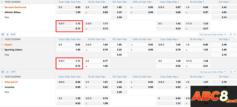 Thông tin kèo này thường sẽ có những ký hiệu chuẩn trên các sảnh thể thao online abc8. Cụ thể là: