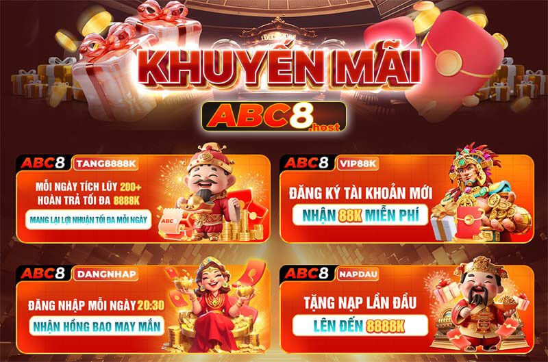 Các chương trình Khuyến Mãi ABC8 hiện hành được xây dựng đa dạng, bao gồm từ ưu đãi cơ bản đến các chương trình cao cấp, nhằm đáp ứng nhu cầu của mọi đối tượng người chơi.